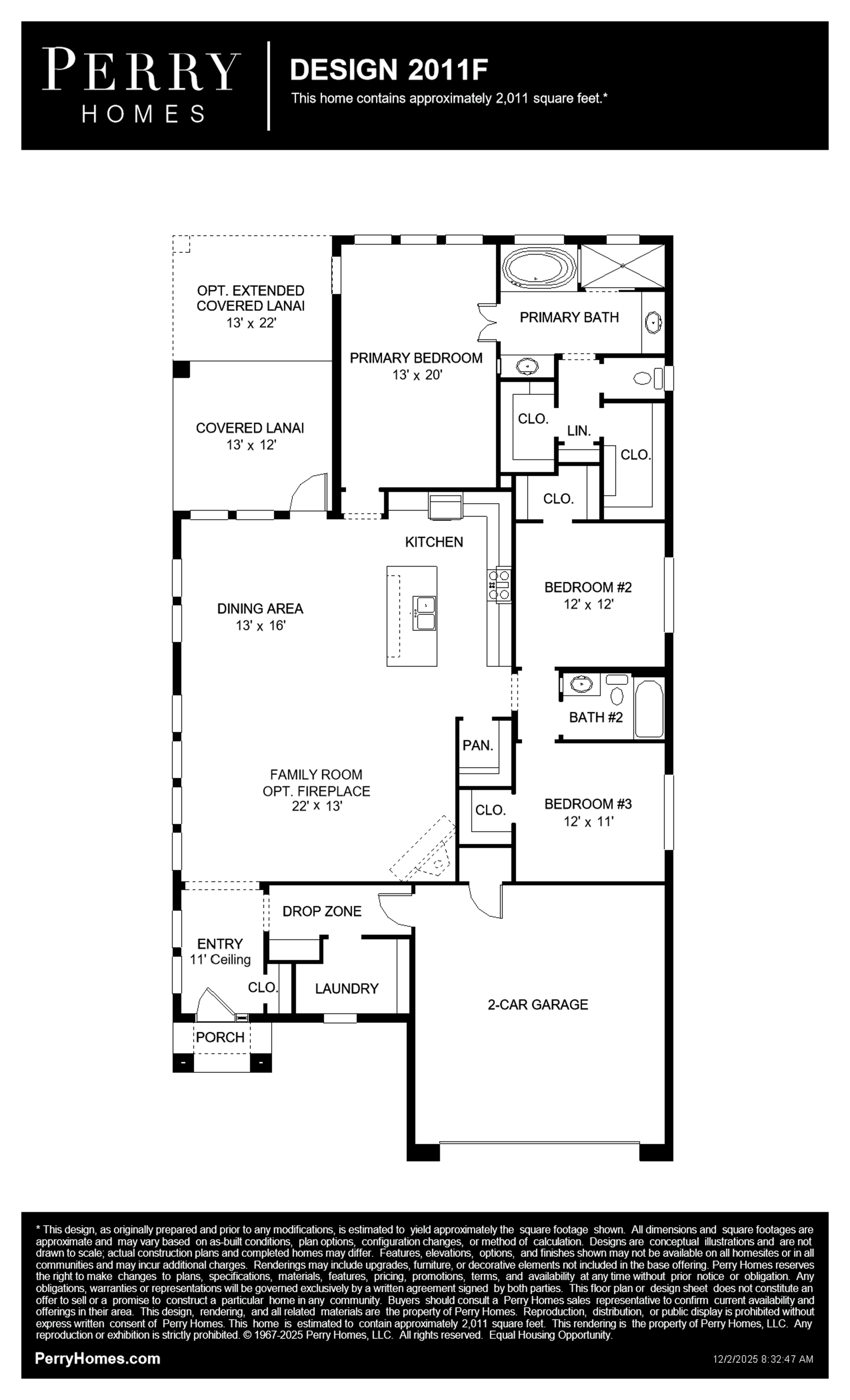 Builder reserves the right to make changes in the designs and specifications, and to substitute material of similar quality. Prices, terms, promotions, plans, dimensions, features, options, amenities, elevations, designs, square footages, specifications, materials and availability of homes or communities are subject to change without notice or obligation. All obligations will be governed by a written contract. This website does not constitute a commitment to build a particular design or home in any given community. Some designs, options, and/ or elevations may not be available on certain homesites or in a particular community and may require additional charges. Please check with Perry Homes to verify current offerings in the communities you are considering.