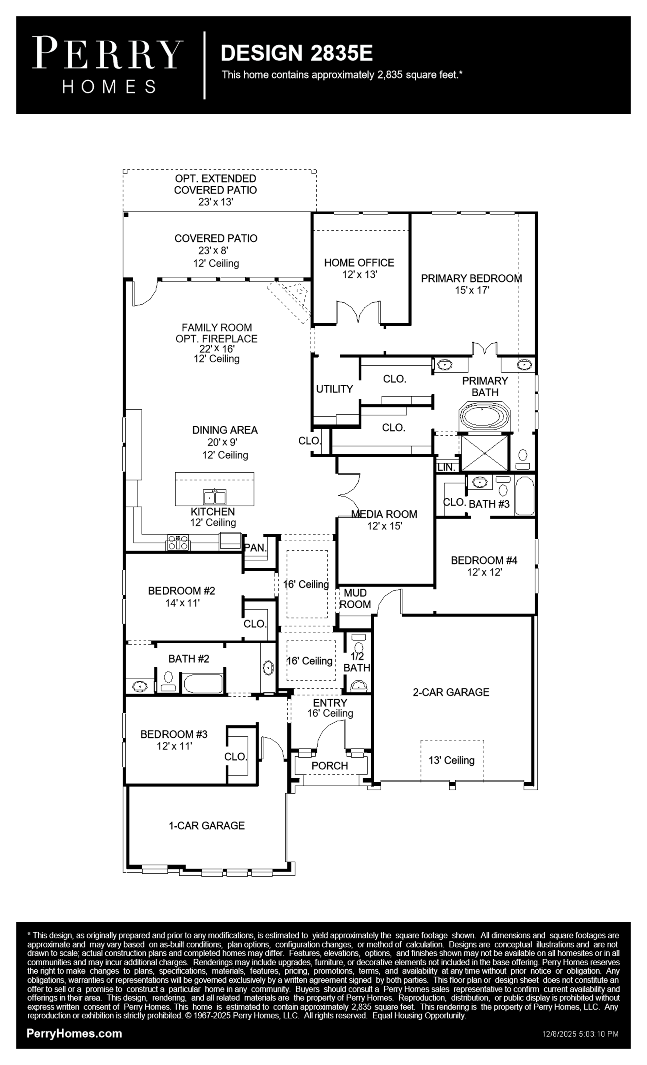 Builder reserves the right to make changes in the designs and specifications, and to substitute material of similar quality. Prices, terms, promotions, plans, dimensions, features, options, amenities, elevations, designs, square footages, specifications, materials and availability of homes or communities are subject to change without notice or obligation. All obligations will be governed by a written contract. This website does not constitute a commitment to build a particular design or home in any given community. Some designs, options, and/ or elevations may not be available on certain homesites or in a particular community and may require additional charges. Please check with Perry Homes to verify current offerings in the communities you are considering.