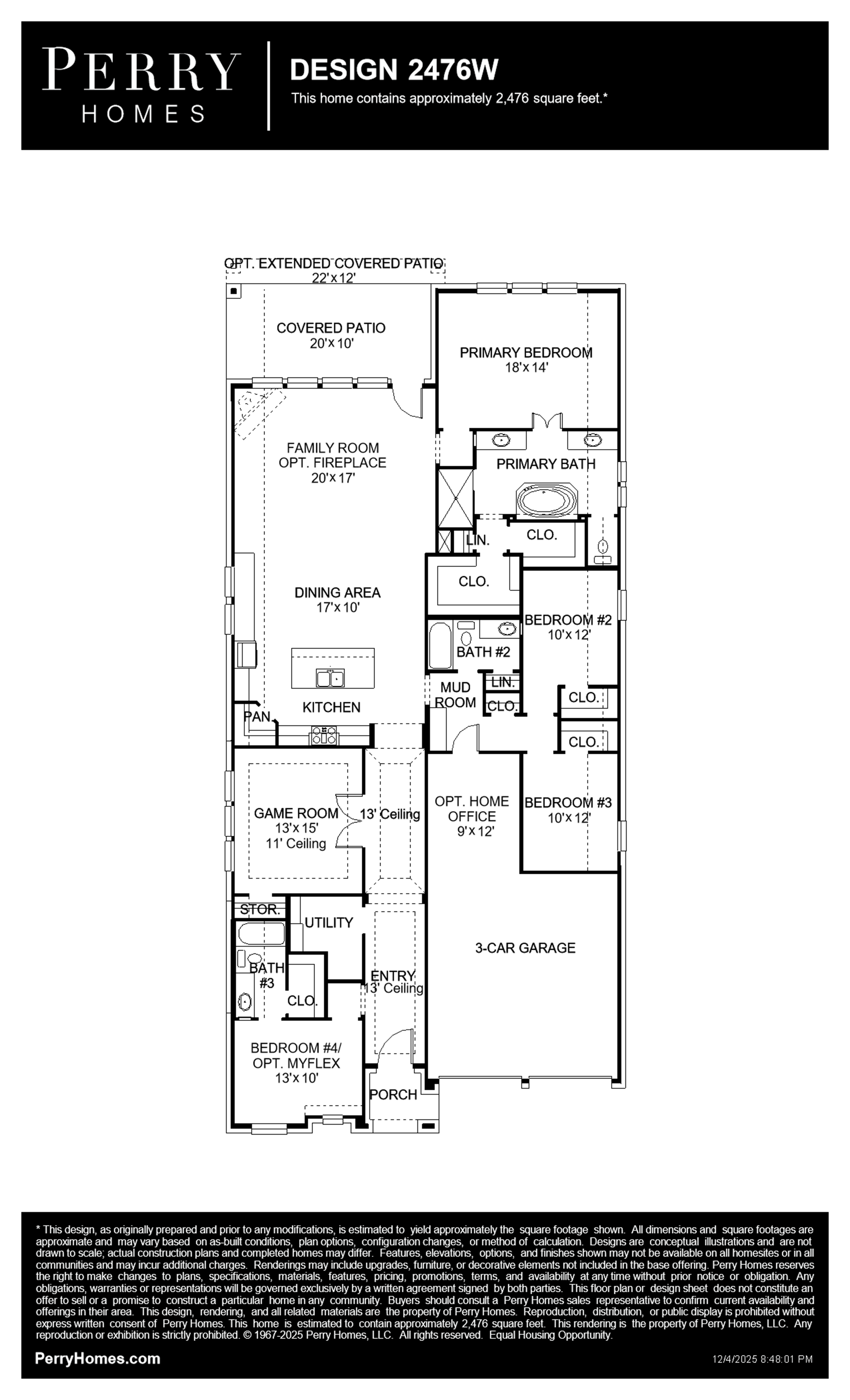 Builder reserves the right to make changes in the designs and specifications, and to substitute material of similar quality. Prices, terms, promotions, plans, dimensions, features, options, amenities, elevations, designs, square footages, specifications, materials and availability of homes or communities are subject to change without notice or obligation. All obligations will be governed by a written contract. This website does not constitute a commitment to build a particular design or home in any given community. Some designs, options, and/ or elevations may not be available on certain homesites or in a particular community and may require additional charges. Please check with Perry Homes to verify current offerings in the communities you are considering.