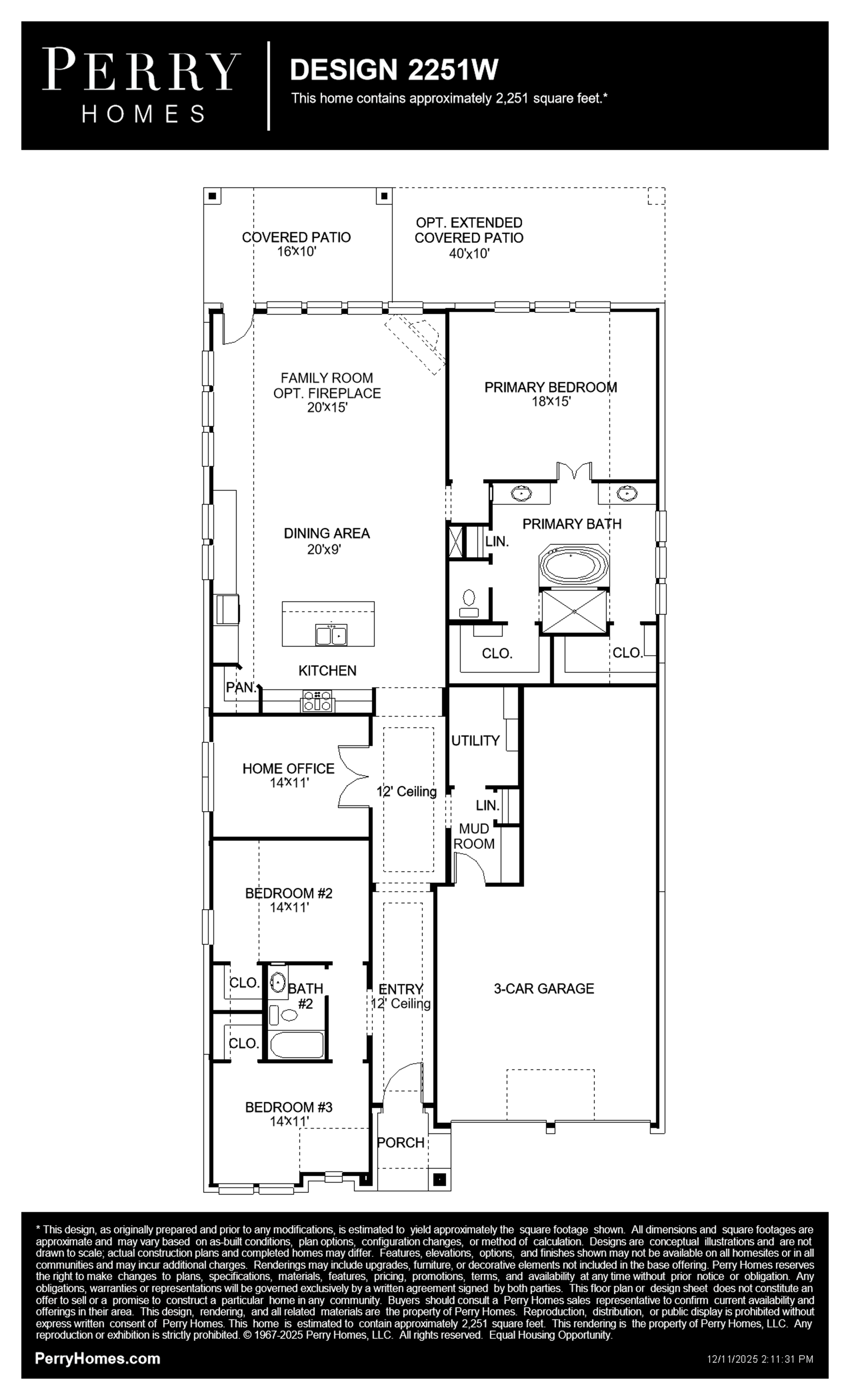 Builder reserves the right to make changes in the designs and specifications, and to substitute material of similar quality. Prices, terms, promotions, plans, dimensions, features, options, amenities, elevations, designs, square footages, specifications, materials and availability of homes or communities are subject to change without notice or obligation. All obligations will be governed by a written contract. This website does not constitute a commitment to build a particular design or home in any given community. Some designs, options, and/ or elevations may not be available on certain homesites or in a particular community and may require additional charges. Please check with Perry Homes to verify current offerings in the communities you are considering.