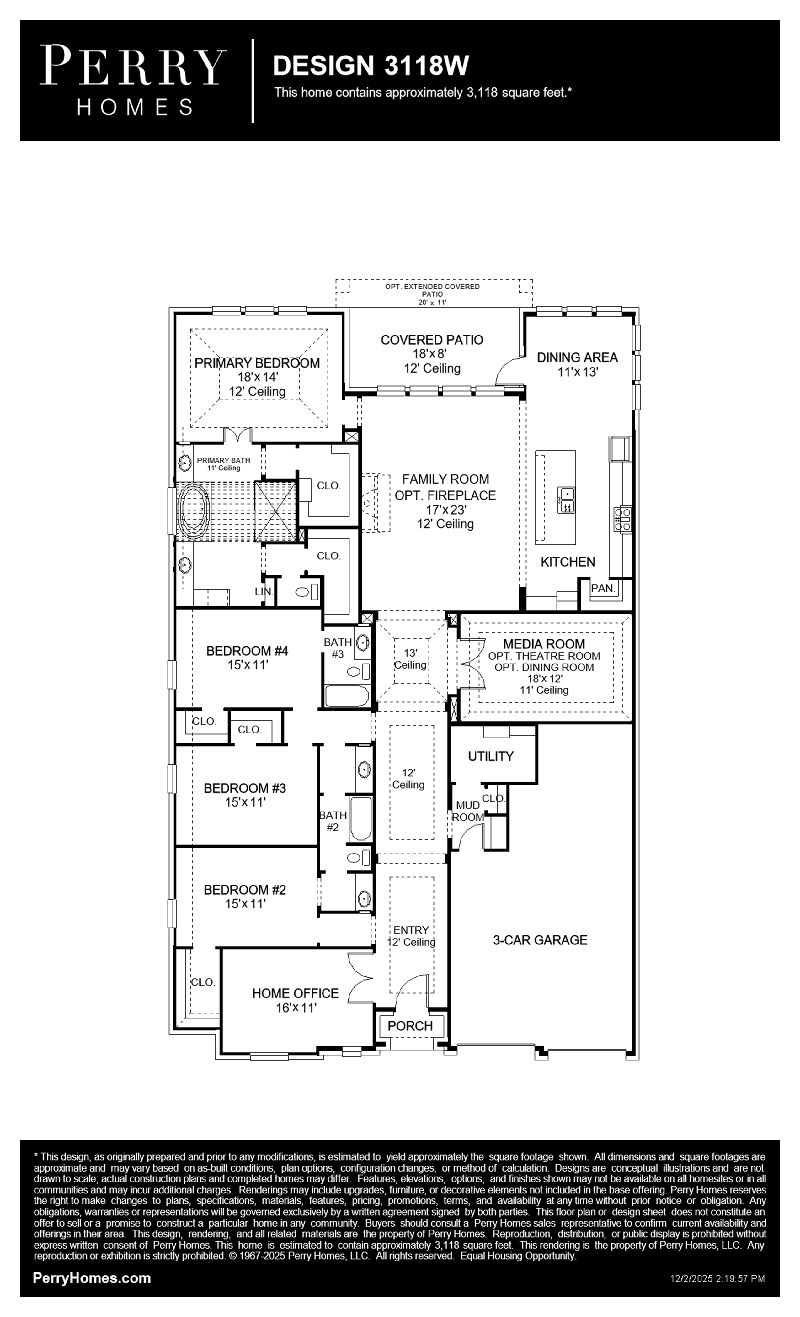 Builder reserves the right to make changes in the designs and specifications, and to substitute material of similar quality. Prices, terms, promotions, plans, dimensions, features, options, amenities, elevations, designs, square footages, specifications, materials and availability of homes or communities are subject to change without notice or obligation. All obligations will be governed by a written contract. This website does not constitute a commitment to build a particular design or home in any given community. Some designs, options, and/ or elevations may not be available on certain homesites or in a particular community and may require additional charges. Please check with Perry Homes to verify current offerings in the communities you are considering.
