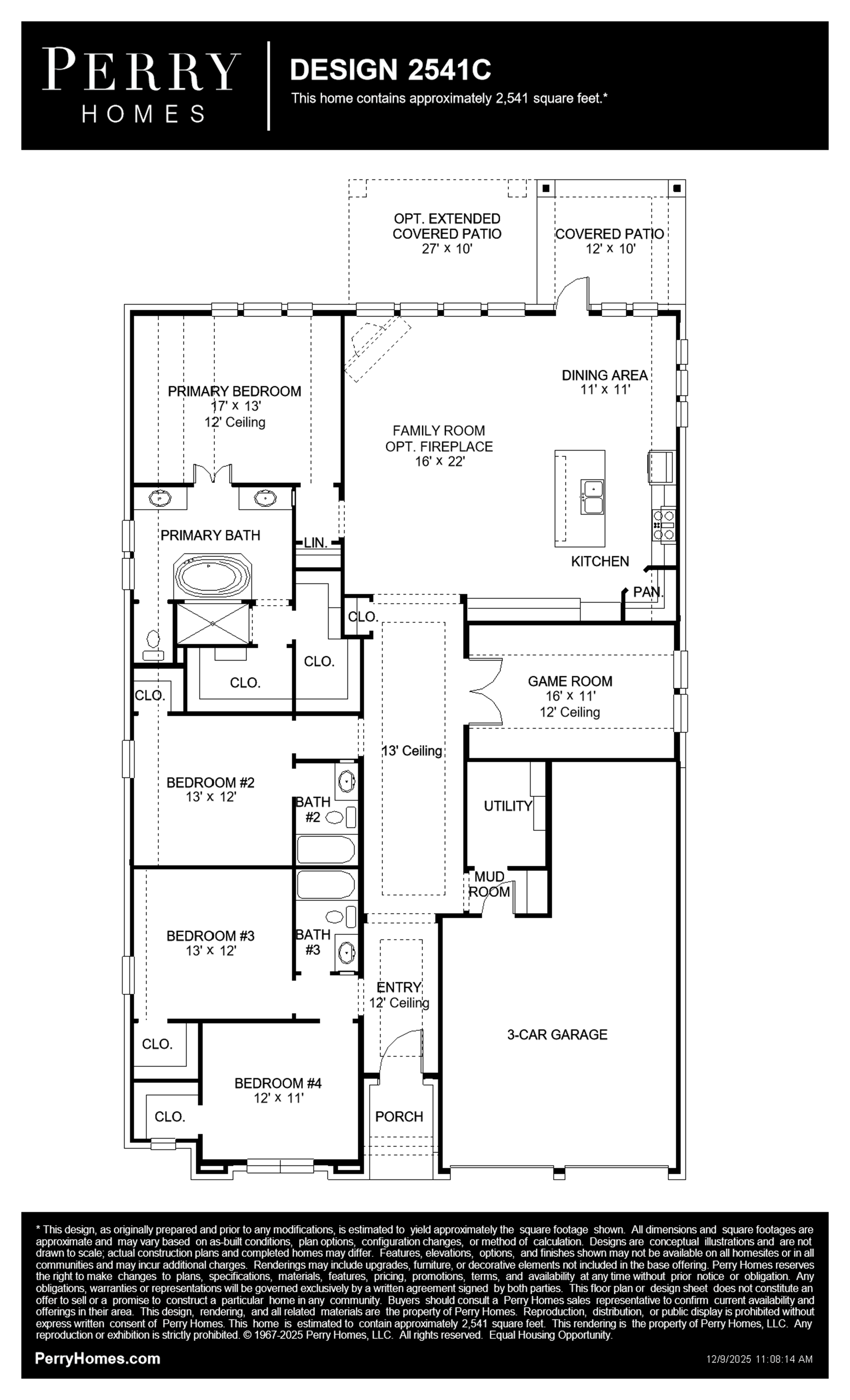 Builder reserves the right to make changes in the designs and specifications, and to substitute material of similar quality. Prices, terms, promotions, plans, dimensions, features, options, amenities, elevations, designs, square footages, specifications, materials and availability of homes or communities are subject to change without notice or obligation. All obligations will be governed by a written contract. This website does not constitute a commitment to build a particular design or home in any given community. Some designs, options, and/ or elevations may not be available on certain homesites or in a particular community and may require additional charges. Please check with Perry Homes to verify current offerings in the communities you are considering.