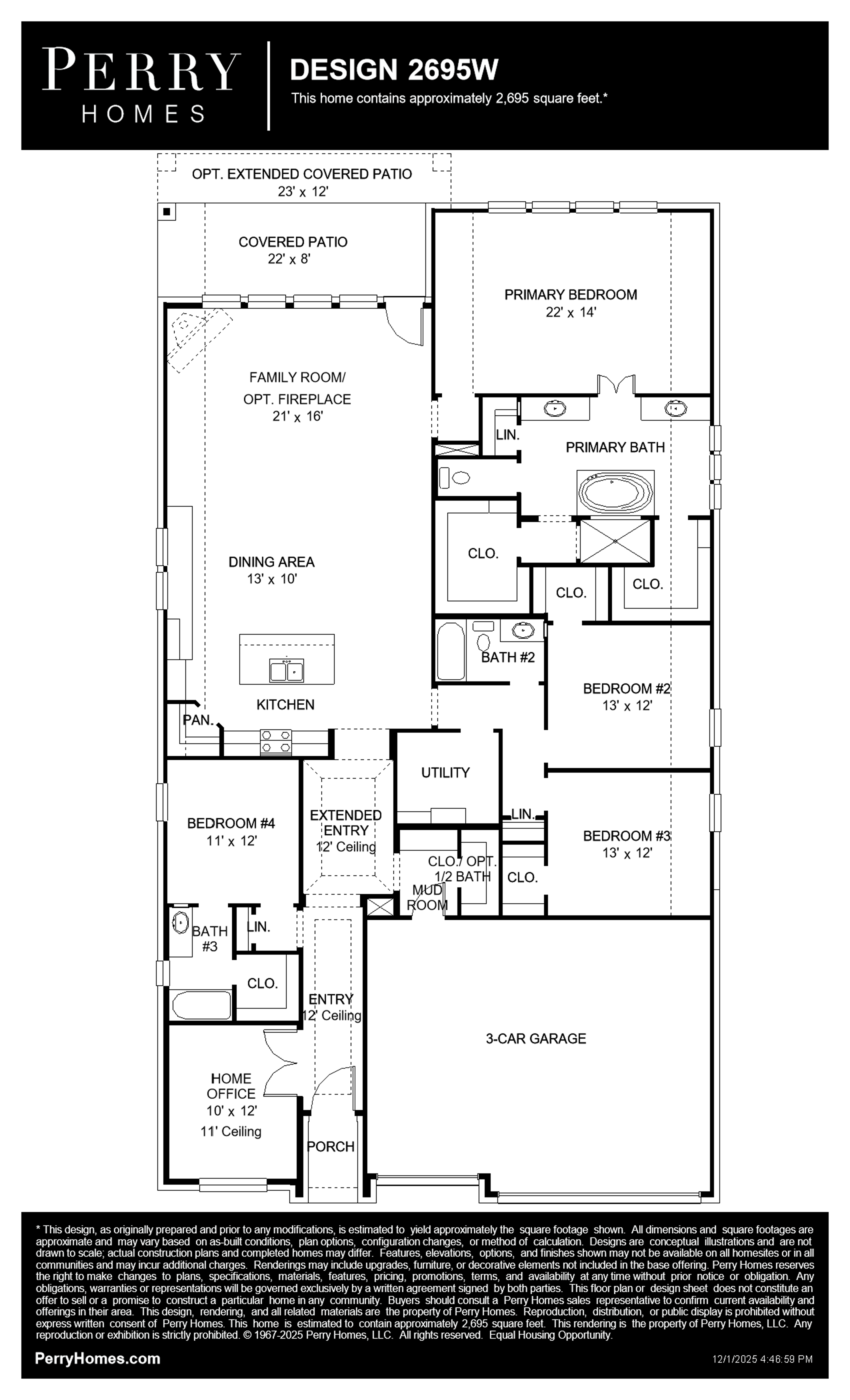 Builder reserves the right to make changes in the designs and specifications, and to substitute material of similar quality. Prices, terms, promotions, plans, dimensions, features, options, amenities, elevations, designs, square footages, specifications, materials and availability of homes or communities are subject to change without notice or obligation. All obligations will be governed by a written contract. This website does not constitute a commitment to build a particular design or home in any given community. Some designs, options, and/ or elevations may not be available on certain homesites or in a particular community and may require additional charges. Please check with Perry Homes to verify current offerings in the communities you are considering.