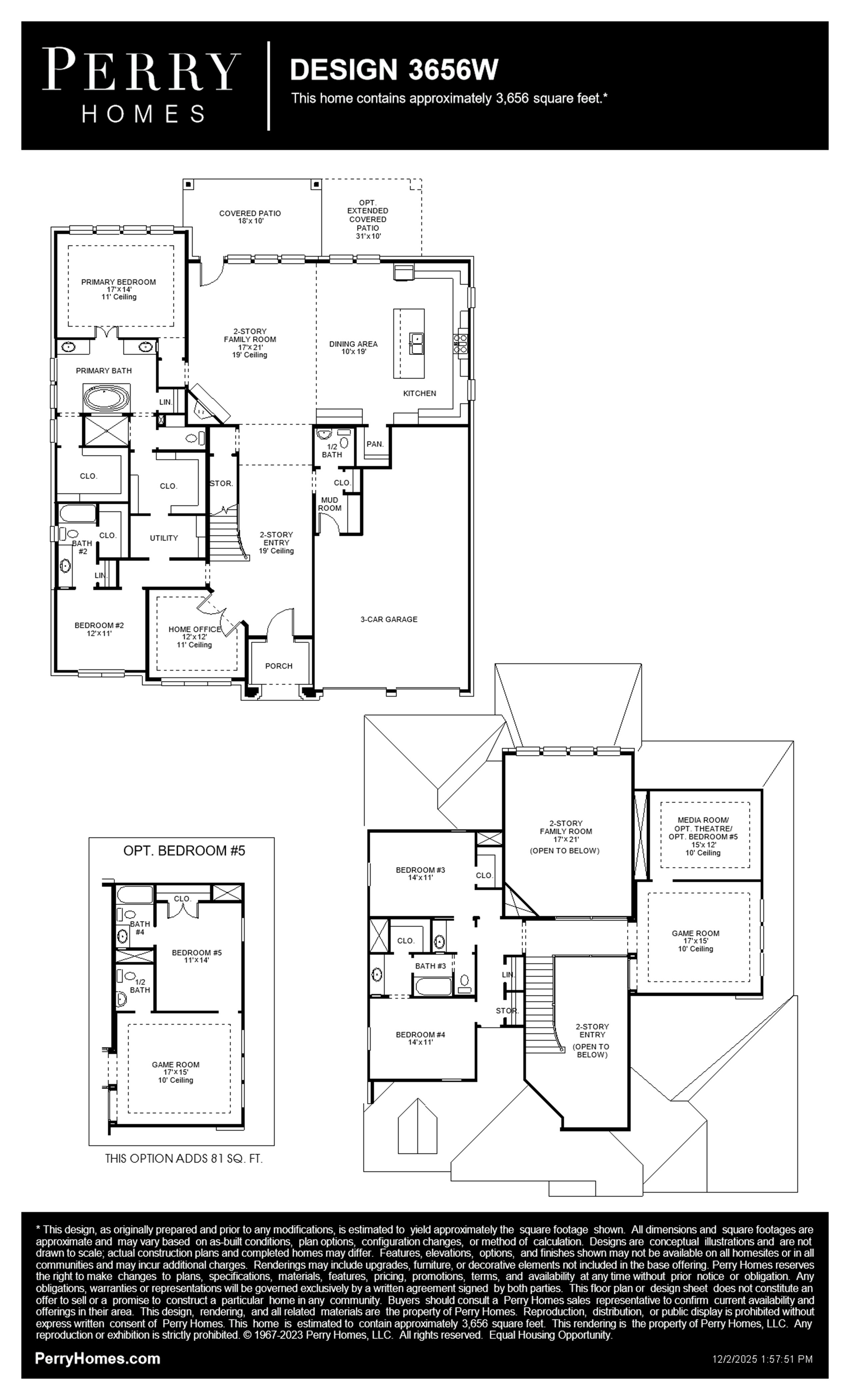 Builder reserves the right to make changes in the designs and specifications, and to substitute material of similar quality. Prices, terms, promotions, plans, dimensions, features, options, amenities, elevations, designs, square footages, specifications, materials and availability of homes or communities are subject to change without notice or obligation. All obligations will be governed by a written contract. This website does not constitute a commitment to build a particular design or home in any given community. Some designs, options, and/ or elevations may not be available on certain homesites or in a particular community and may require additional charges. Please check with Perry Homes to verify current offerings in the communities you are considering.