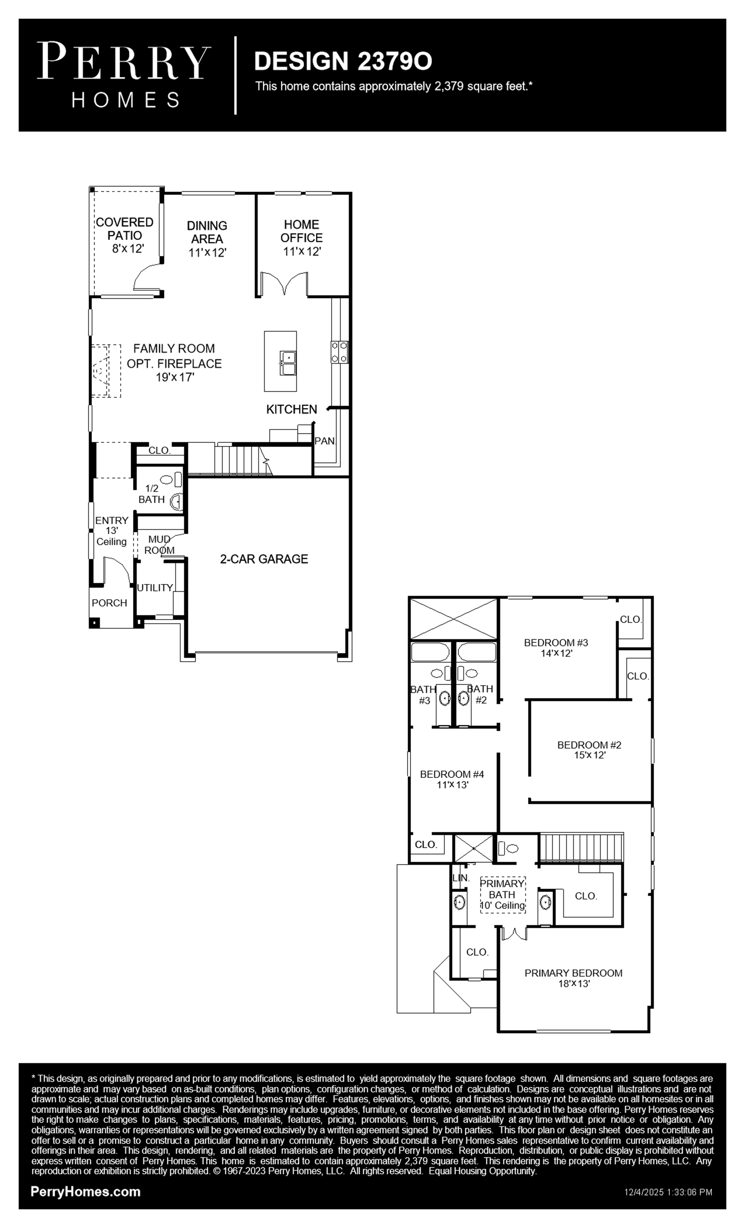 Builder reserves the right to make changes in the designs and specifications, and to substitute material of similar quality. Prices, terms, promotions, plans, dimensions, features, options, amenities, elevations, designs, square footages, specifications, materials and availability of homes or communities are subject to change without notice or obligation. All obligations will be governed by a written contract. This website does not constitute a commitment to build a particular design or home in any given community. Some designs, options, and/ or elevations may not be available on certain homesites or in a particular community and may require additional charges. Please check with Perry Homes to verify current offerings in the communities you are considering.